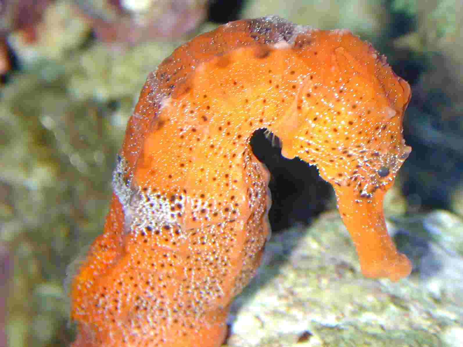 黄色からオレンジ色の体色、小さい斑点模様があるのがふつう。15〜20cmまで成長する。