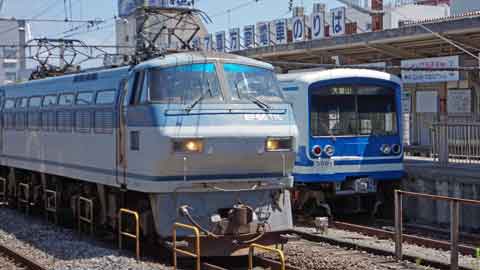熱海行きを待つ間大雄山線を撮ろうとも持っていましたが、ファインダーを見ている多EF66が…