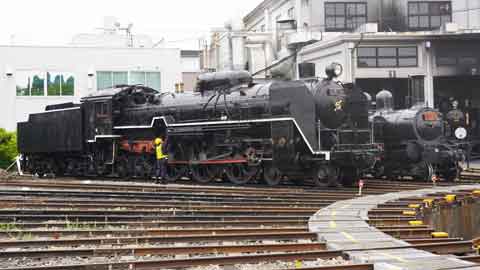 今日のスチーム号はC62 2、客車は1両が扇形庫内で整備中だったからか1両?