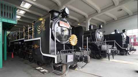 トーマスになっているC11 64やマイテ49 2が扇形庫の中にいます。