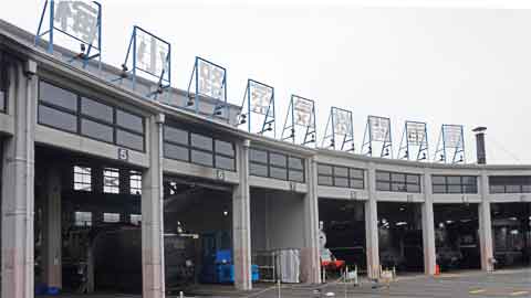 扇形庫上の表示が「梅小路蒸気機関車庫」になってました。