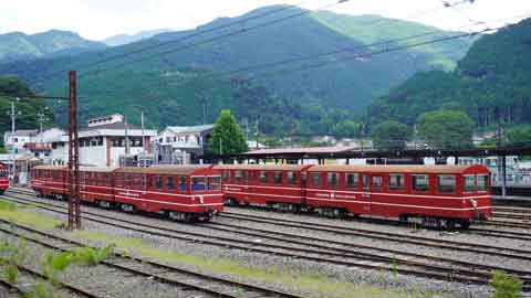 車を止めた側は井川線の車庫で、客車がたくさん留置されていました。