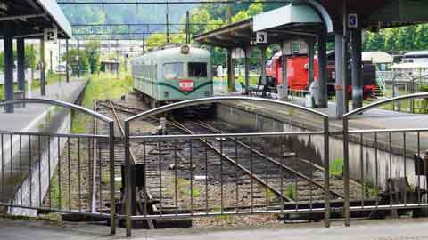 途中の橋を渡った時、ちょっとだけアプト区間の線路が見えました。