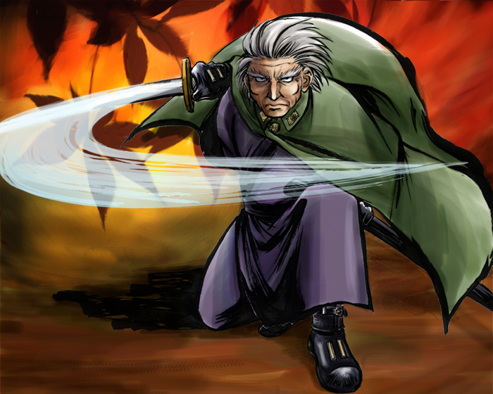 最初は背景は特に入れない(あるいは色ベタに刀の軌跡のみ白抜き)つもりが