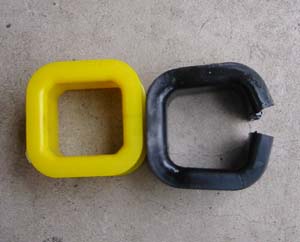 | 外れたブッシュ。 純正は、完全にゴム。 かなり硬さが違います。 |