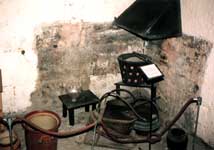 作業室の一角に金属鏡の鋳造の様子が再現されている。