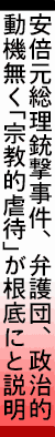 安倍元総理襲撃は個人的報復 安倍元総理は支援していた宗教団体旧統一教会を代表する者として報復襲撃された。旧統一教会の悪行が世に晒される契機となった。政治的要素の全くない事件 |
