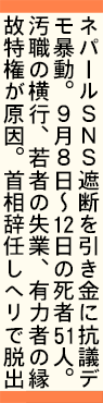 ネパール若者抗議デモ暴動 言論集会の制限に対する怒りがSNS上で共有されていたが、政府の突然のSNS遮断措置が暴動の引き金に。若者には汚職・縁故特権・失業等鬱積した不満がある |