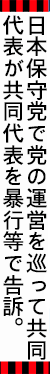 同党の百田氏を暴行で告訴 百田氏が、テーブルを叩き威圧して、私に向かってペットボトルを投げつけ、その後、右手を振り上げ「お前、俺が殴ったら死ぬぞ」と言ったため恐怖を感じた |