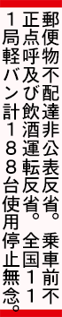 何時迄日の丸親方郵便局 郵便局員の点呼不正や飲酒運転、郵便物の不配達問題には局員の待遇と曖昧な賞罰に問題があるのではないか。どんなものでも手入れしなければ壊れるのは早い |