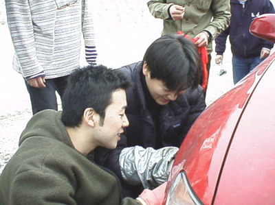 チェーンを着けなきゃね。雪は滑るからね。