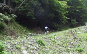 河原の急勾配を登る、しかしもはやこのあたりで林道は終る。