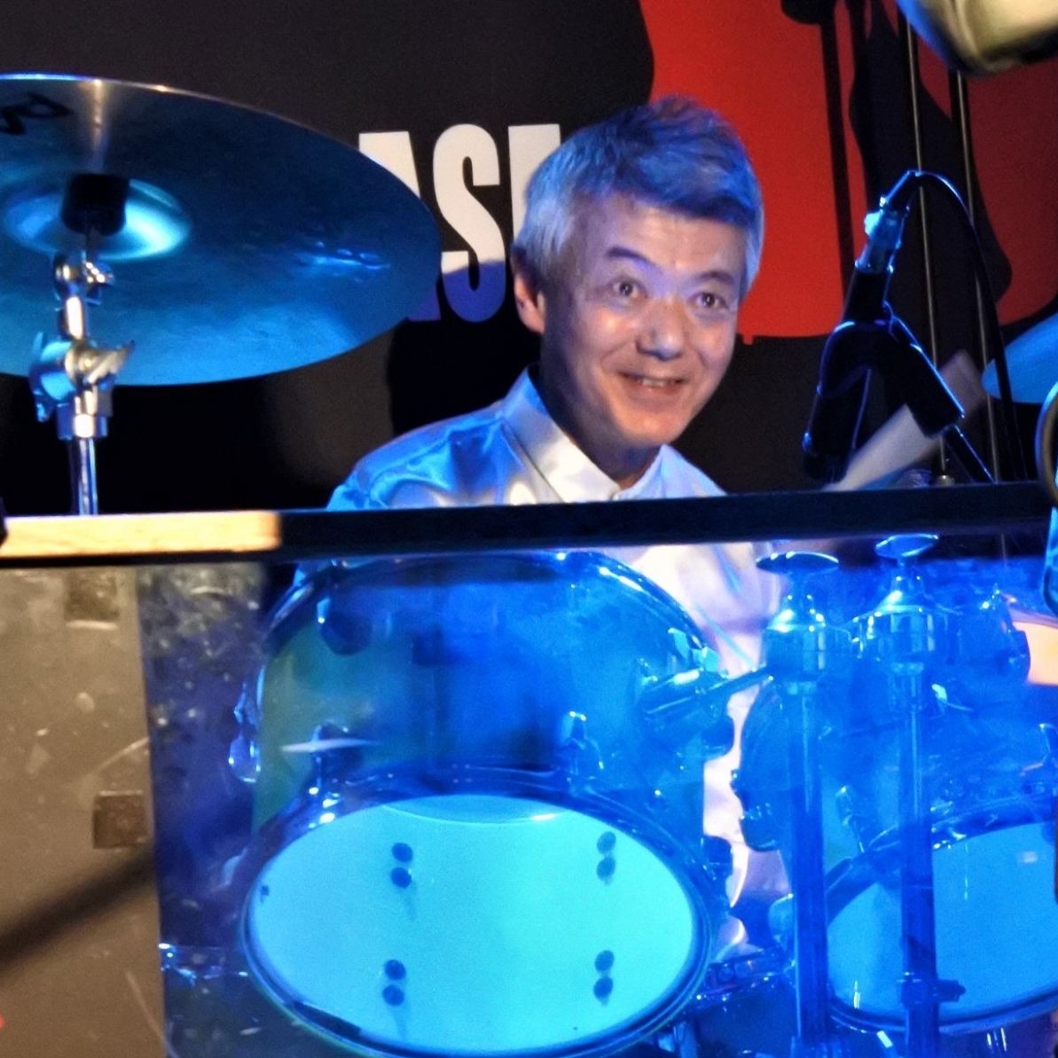 テルさん Drums. 学生時代はジャズ研に所属しビッグバンドのドラマーとして腕を磨く。現在でも東京や横浜などの首都圏で開催される出身大学のジャズ研発表会に「大OB」として足を運んでいる。 某中学校の教頭先生だった固いイメージの経歴を裏切るひょうきんなキャラでバンドの雰囲気を和らげている。 |