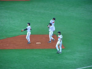 | 外野に落ちていたボールを取りに 阿部ちゃんがわざわざ来ていました |