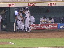 先制のヒットは礒部が放ちました | 礒部のヒットでローズが生還 |