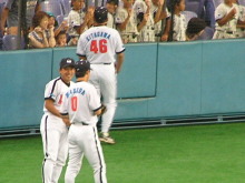 | 座りこみ(苦笑) | スタメン落ちでした。 キャッチボールに 何度か出てきていました |