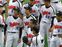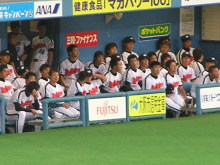| 皆さんのごひいきの選手は? | あれ?整列だけ? 水口さんがスタンド行かないの? とポーズをしています(左端) |