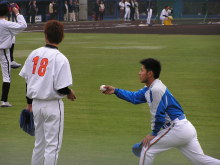 少しのんびり気味の吉岡 | 星野と二人でのんびり 守備練習中 |