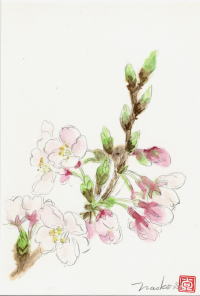 | サクラ | 1週間が見ごろですから、今のうちに絵を描いておかないと、と言うことで、素材を変え、大きさを変えて何枚か描きました。 4月の「ふみの日」の小型印のテーマは「サクラとヒバリ」ですし。(^_^.) |