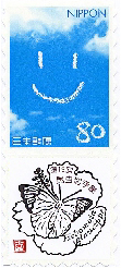 シール式マイ切手「ほのか or スマイル」 80円切手×10枚 1500円。