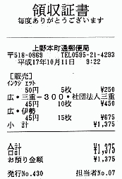 風景印(1995.8.3〜上野祭楼車・だんじり、ひょろつき鬼、上野城、サクラ)は、かなり磨耗しているようで、作り変えたいそうで、2006.4.1を希望しておられます。 |