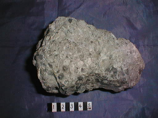 フズリナ(ヤベイナ・グロボーサ)の風化した化石です。ころころと小さなゴルフボールのような化石が取れます。