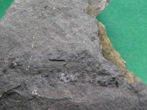 何の化石かわかりませんが軸の両側に黒いつぶつぶが鈴なりになっています。