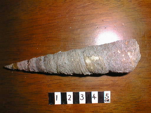長いツリテラ キイエンシス(Turritella(s.s)kiiensis Yokoyama)の化石です。和名はキイキリガイダマシといいます。