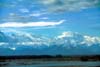 アラスカ山脈には北米最高峰のマッキンリー山南峰(6,194m)を筆頭にマッキンリー山北峰(5,932m)、 フォーレーカー山(5,304m)ハンター山(4,442m)、シルバースローン山(4,029m)、ブルックス山(3,619m)、 デイセプション山(3,605m)、ラッセル山(3,557m)等々の白嶺が雲海を突き抜けて聳えている。 マッキンリー山(デナリ山)
