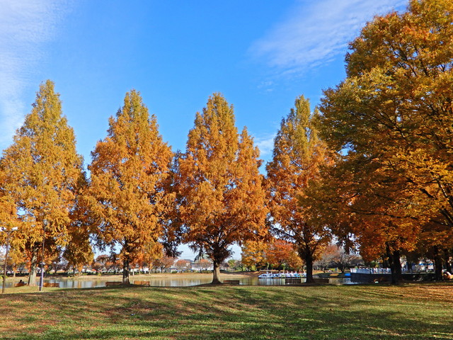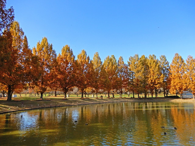 2025年11月 川越公園のメタセコイアの紅葉 (水上公園ボート池)