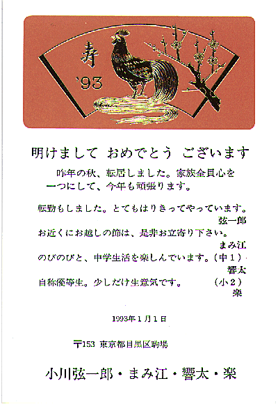 1993年の年賀状