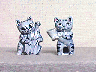 陶器の猫の二重奏。