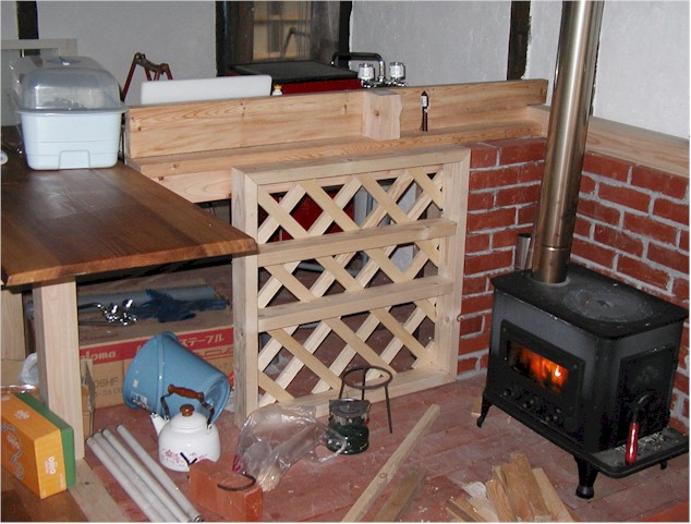 寒い冬の作業は屋内に限ります。これからはいよいよ仕上げの作業に掛かります。今回は柿渋が手に入らないので、同系色のオイルステンを塗ることにしました。