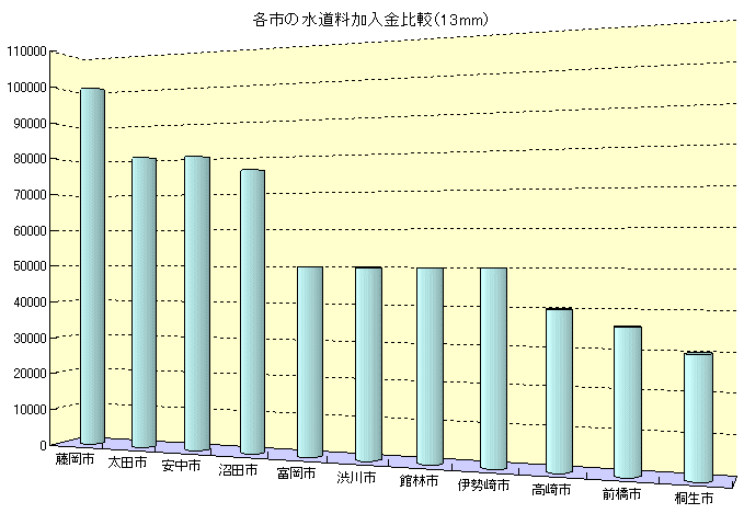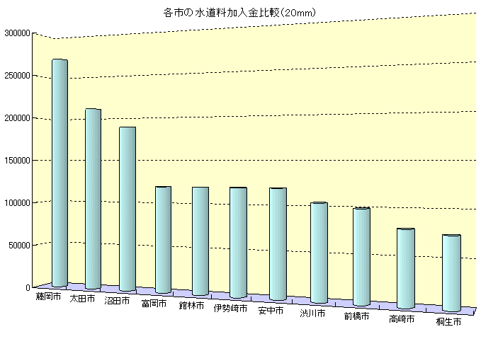 群馬県各市の水道加入金 棒グラフ