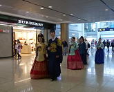 乗り換え手続きを終えてロビーに着くと、ちょうど民族衣装の行列をしていました。