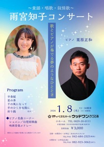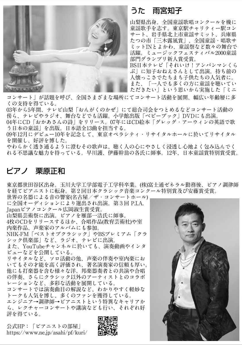恒例の童謡歌手・雨宮知子さんによる広島コンサート。知子さんのお母様、そして栗原の母方の祖父/祖母も広島の人! チラシウラは