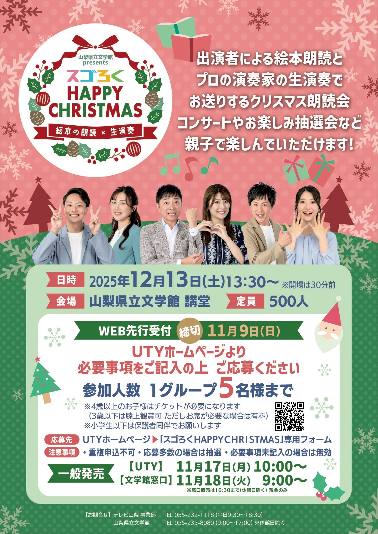 テレビ山梨「スゴろく」の恒例クリスマス・コンサート。栗原はアナウンサーの方々の朗読とコラボなど。
