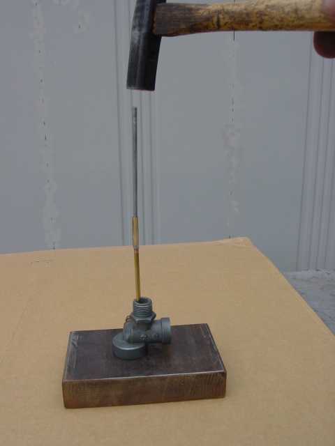 6.パイプを打ち込む ★新しいパイプにメッシュを付けたときはパイプのテーパー部分をコック本体に打ち込む。