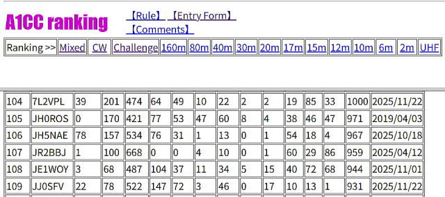 A1Cに2000年に入会から25年、遂にメンバーとの1000QSO達成