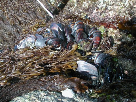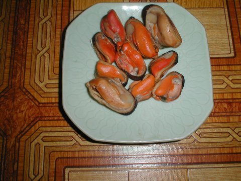 瀬戸貝を食べる 瀬戸貝は基本的に海底に生息するものだが、潮の干満によってたまに顔を見せる。 これは、ひげのようなものでしっかりと岩についているので、結構とるのが難しい。 一つ一つは下の図のようなもで、本当は、七輪で網焼きして(バーベキュー風)食べると 美味しいのだが、今回は釜茹でにしてみた。海水で茹で、貝が開くと出来上がりだ。 大きいものは20数センチになるが今回は10センチ程度なので丸ごと醤油をつけて 食べると酒の肴に最高だ。