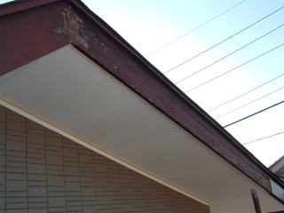 リフォームの時はいったん吊ってある雨樋をはずして 板金取り付け後再度 雨樋を吊りなおします。