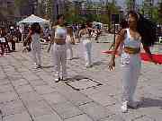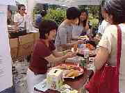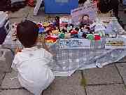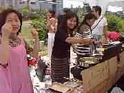毎月1回、ステージと屋台、県内最大のフリーマーケットを軸に 開催している「千田わっしょい祭」の場を借りて行いました。普段でも、 朝から夕方までのべ2万人くらいの客を集める大きなイベント なのですが、今回はいつもをはるかに超える来客がありました。 何たってブラジル人が多い!客とスタッフを合わせたらブラジル人は 300〜400人くらいいたのでは。 |