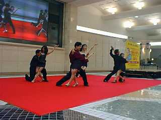 | 1999.09.11 | 全国生涯学習フェスティバルプレイベントでステージ ●9月11日広島駅前エール・エール地下街広場にて、全国生涯学習フェスティバルプレイベントでステージに出演しました。場を盛り上げてほしいとの要請で、依頼がありました。ペアサルサ、メレンゲ、シャインチームが出演しました。土曜日の昼とあって少し人通りは少なかったのですが、PRに貢献しました。