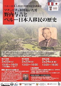 ペルー日本人移民120周年記念講演会「マチュピチュ村を拓いた男 野内与吉とペルー日本人移民の歴史」 2020/02/23 ![]() マンボスのリチャードはペルー・クスコ出身です! 私は2回もマチュピチュ行きました。ペルー人と一緒に。麓のアグアス・カリエンテスの温泉お勧め。 ▼日時=2020年2月23日(日)13:00-16:00 ▼会場=「エソール広島」研修室(おりづるタワー10階)(12時30分から展示をご覧頂けます) ▼入場料=無料 ▼内容=現在では年間100万人もの観光客が訪れるペルーのマチュピチュ遺跡が世界的な観光地となった背景には、その玄関口であるマチュピチュ村の開拓がありました。そのマチュピチュ村を創り、発展に尽くしたのが、一人の日本人移民であったことは、あまり知られていません。 ペルー日本人移民120周年にあたる本年度、マチュピチュ村のために貢献した野内与吉に焦点を当てるとともに、ペルーの日本人移民たちが、幾多の困難に遭遇しながらも乗り越え、ペルーにおける日系社会を形成してきた足跡や、二、三世が活躍する現在のペルー日系社会を、講演とパネル展示で紹介します。 また、移民を多く輩出している広島、山口の会場では、各県の移住の歴史や現在の日系社会との関わりについて、岡山会場では、JICA海外協力隊の視点から見た日系社会の今を、各地域ゆかりのゲストスピーカーから伺います。知られざるもう一つの「ニッポン」を、見つめ直してみませんか? ※詳しくは、JICAへ。 |
