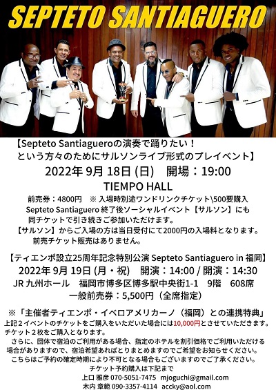 Septeto Santiaguero (セプテート・サンティアゲーロ)ライブ! (2022年9月18日-19日)