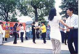 | 1997.5.25 | ●千田わっしょい祭り 1997.5.25 千田公園で開催された千田わっしょい祭りでラテンダンス。SALSA & LATIN DANCEのパネルは手作りです。 ![]() ![]() |