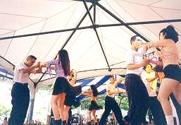 ラティーノたちも頑張りました。遠くは岩国から何度も練習を重ねこの日を迎えました。振り付けは、ベネズエラのレアンドロとコロンビアのフリアン。女性は出演したい人が多く、男性を探すのが大変だったようです。ブラジルチームも相当練習しました。