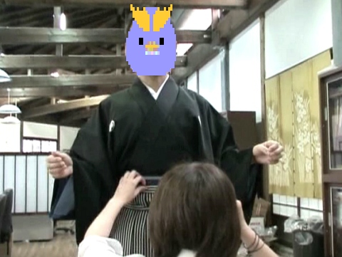 あでりーよりもさらに速い時間で、僕の着付けは終わった。あでりーは大きく動くことができないため、椅子に座ったまま僕の着付け風景をビデオで撮影してくれた。
