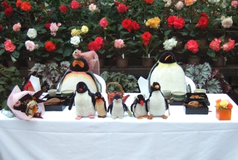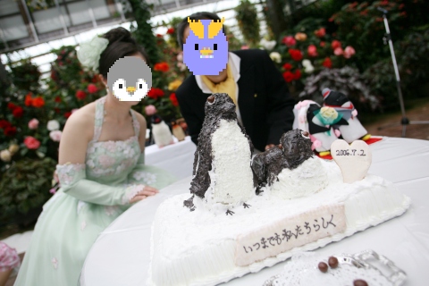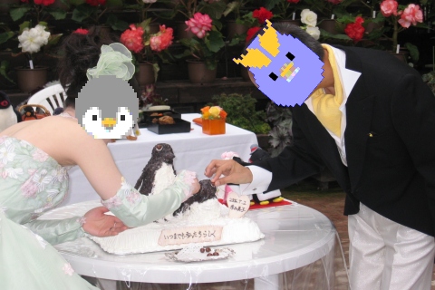 | (司会) 『しばらくの間はペンギンがメインテーブルのお留守番をさせて頂きますが、式後、車の運転がございますので、アルコール類は勧めないようにお願い申し上げます』 | |