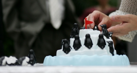 | 言われるまでまったく気づかなかった。さらに会場は盛り上がってきた様子だ。 そうこうしているうちに、さらに揺れが激しくなってきた。さすがにお二人のペンギンを置く指も慎重になる。 |
